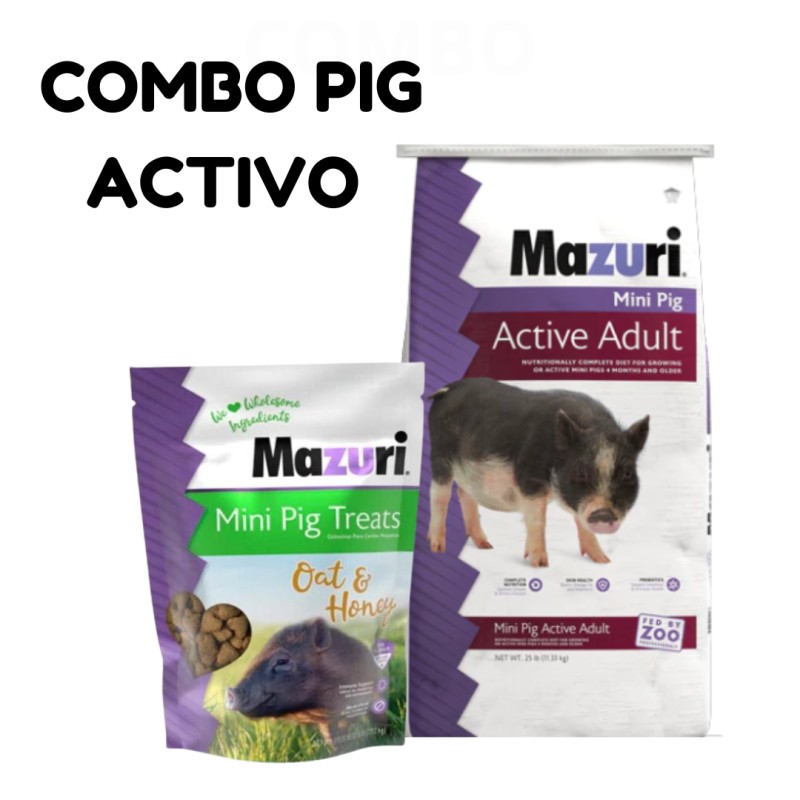 El combo ideal para tu mini pig Adulto, con este increíble combo tu mini pig no solo tendrá una excelente alimentación sino que también podrás premiarlo con nuestros deliciosos Treats de mazuri.